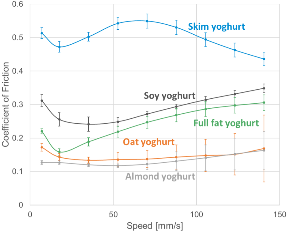 Figure 2: Tribology results for dairy and plant-based yoghurts based on research carried out by Els de Hoog of NIZO.