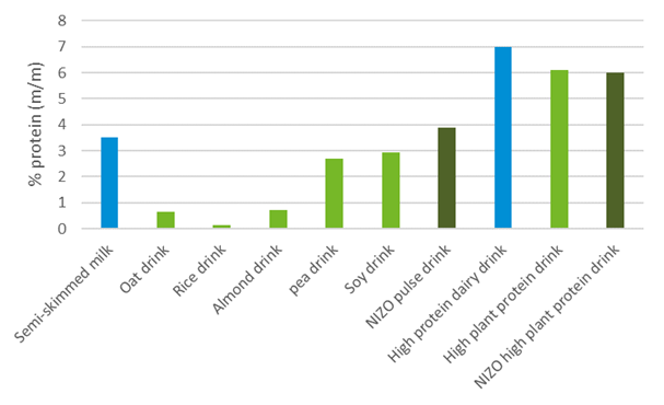 The plant protein universe, on the other hand, is very diverse, and each plant protein behaves in a different way. Some are already used to make milk alternatives that approach the protein levels of dairy milk: soy beverages, for example. But other plant beverages have difficulty reaching protein parity with even ordinary dairy milk. Rice and oat ‘milks’, for example, in general have low protein levels, and high amounts of carbohydrates.