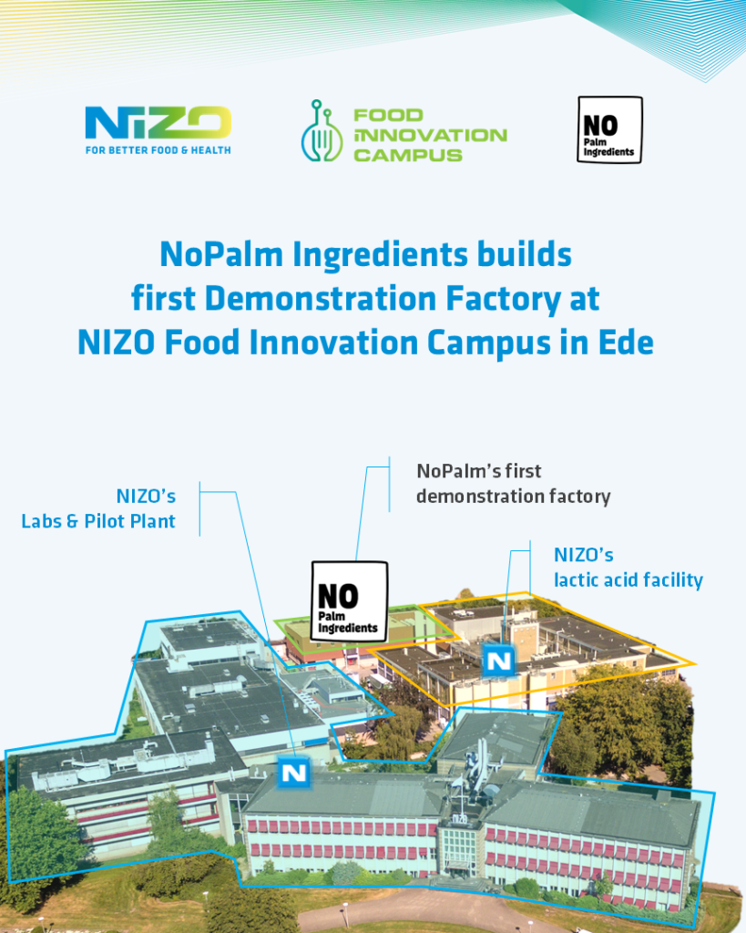 Wageningen/Ede, 2 September 2025 – Biotech pioneer NoPalm Ingredients® and contract research company NIZO Food Research jointly announce the establishment of NoPalm Ingredients’ first Demonstration Factory at the Food Innovation Campus at NIZO in Ede. Here, NoPalm Ingredients® will for the first time run its process for sustainable palm oil alternatives entirely at one location. This contract marks the transition from pilot to commercial-scale production.